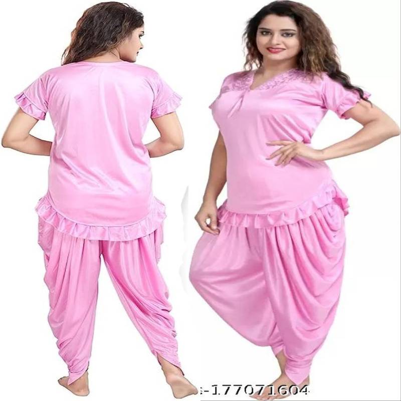 Pink Dhoti Style Night Dress (2 Part-Pi)